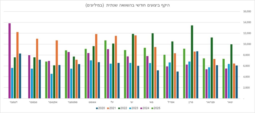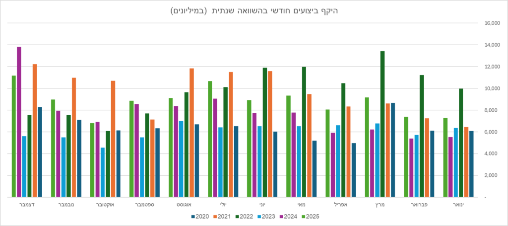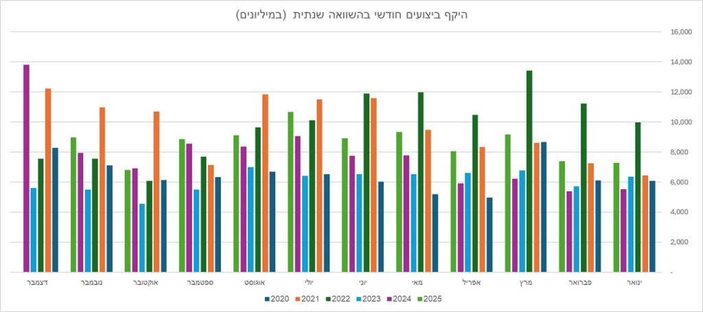 יחד עם זאת, בהשוואה לשנה הקודמת, על בסיס אותה תקופה, ניתן לראות עלייה של כ-20% בהיקף המשכנתאות שניתנו בשנת 2025.